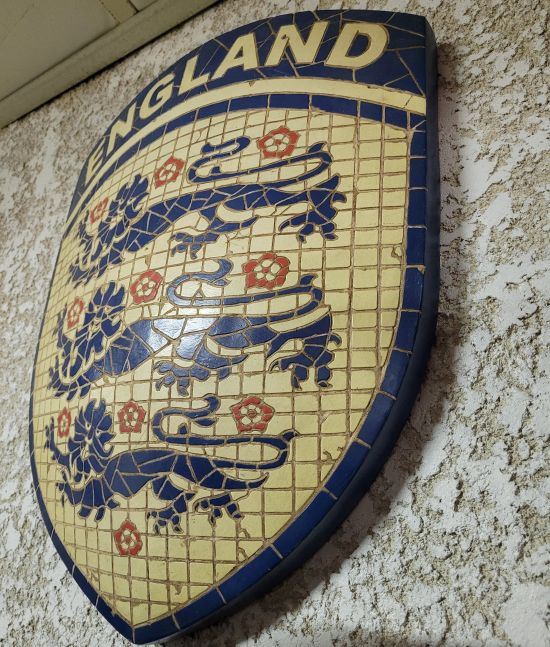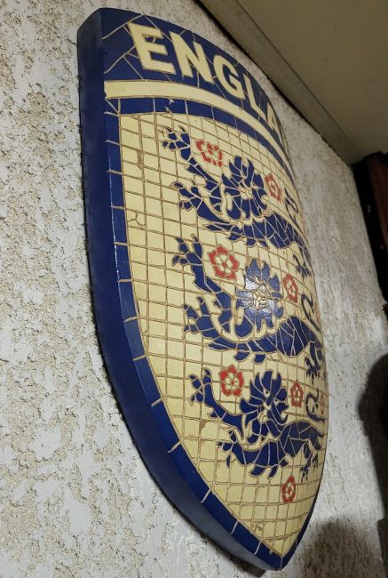 Moulage résine, imitation d'une mosaique représentant le blason anglais.