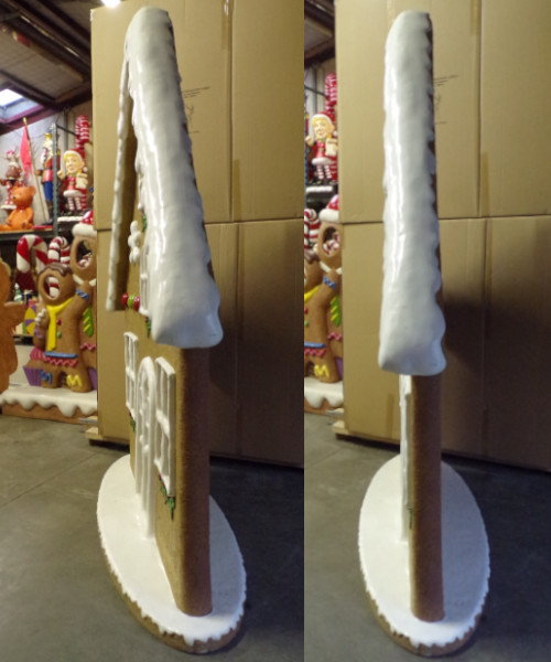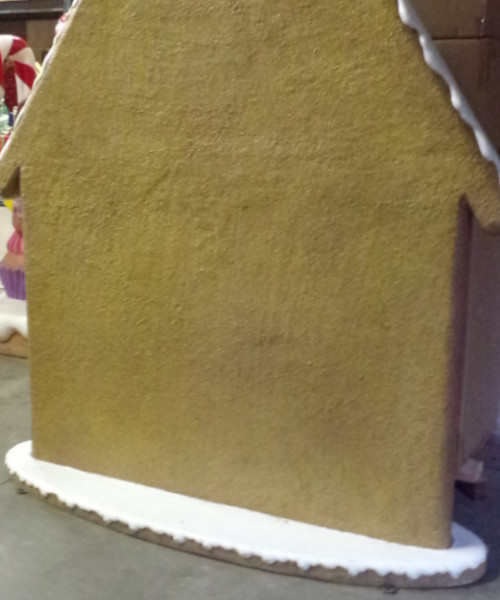 Joli chalet pain d'épice, aux décors de Noël, enneigé.
